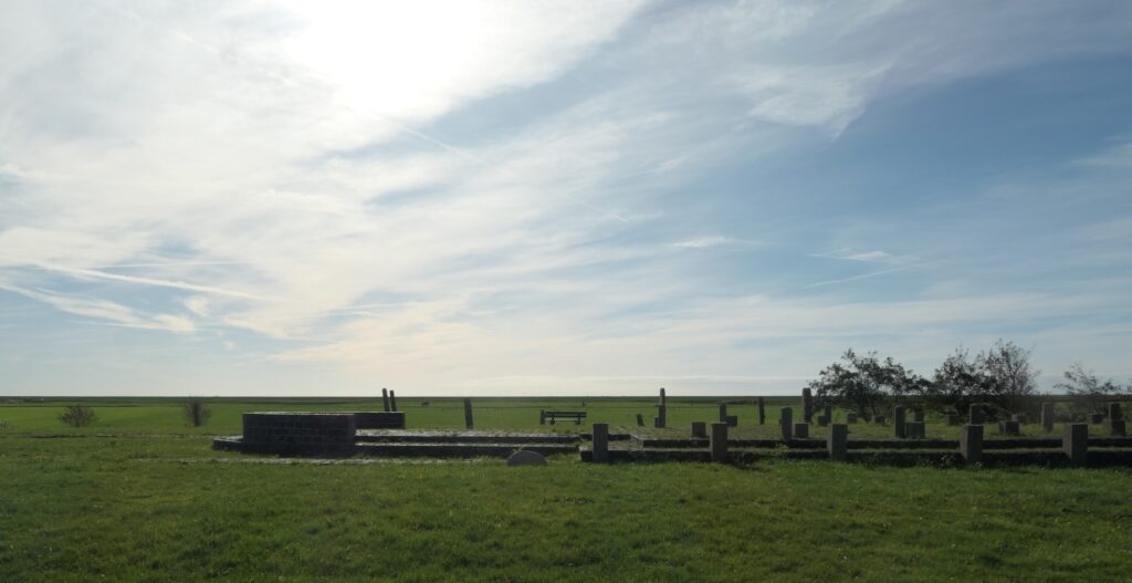 Pal buiten Midsland liggen de contouren van de oude kerk, een meter of twee boven het maaiveld. Er staan bijzondere grafzerken.