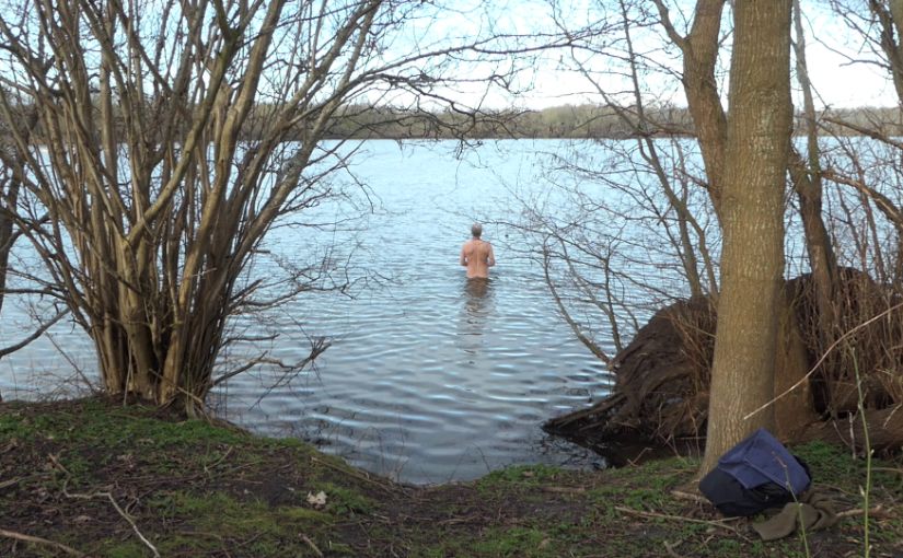 Ik zwem anders. Ik zwem niet, ik ben in het water, met de bomen, de wind die door de bladeren waait of de kale takken, de schreeuw van ganzen, meerkoeten, het zingen van fijne regendruppels die op het water vallen, een sterrenhemel zonder vallende sterren, een zwaluw die over mijn hoofd schiet. Naakt. Natuurlijk. De kou die mijn lijf intrekt, op het randje van leven en dood.