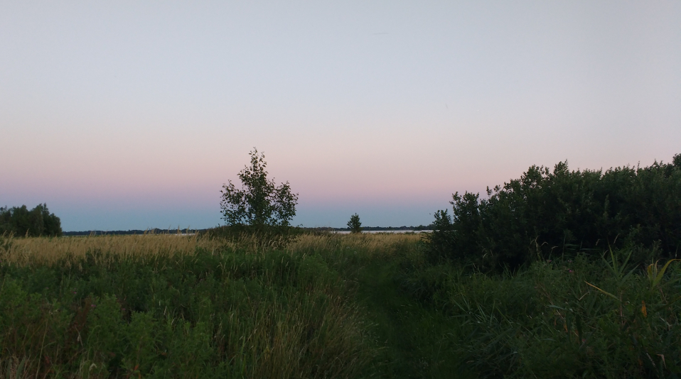 De camping heeft een meer, een pingoruïne. Daar kan je wel in, natuurlijk heb ik dat geprobeerd, maar je zakt tot je knieën in de drab. Niet fijn. Wel fijn is het meer in het bos in de buurt van de camping, vijf kilometer lopen. Het water is tropisch blauw. Jammer genoeg is het ook druk. Ik was op een koude zondag, maar met zon, om tien of elf uur bij het meer, in het gezelschap van fietsers op de ATB-baan, wandelaars op de oever en een hardloopkudde oude mensen, achtervolgd door een luid zoemende drone – waarom eindeloze beelden maken van de achterkant van sukkelende oude hardlopers ? Ik wilde zwemmen en dat heb ik gedaan, naakt ook, het water is al gauw erg diep dus het ongemak duurde maar kort, maar toch te veel mensen.